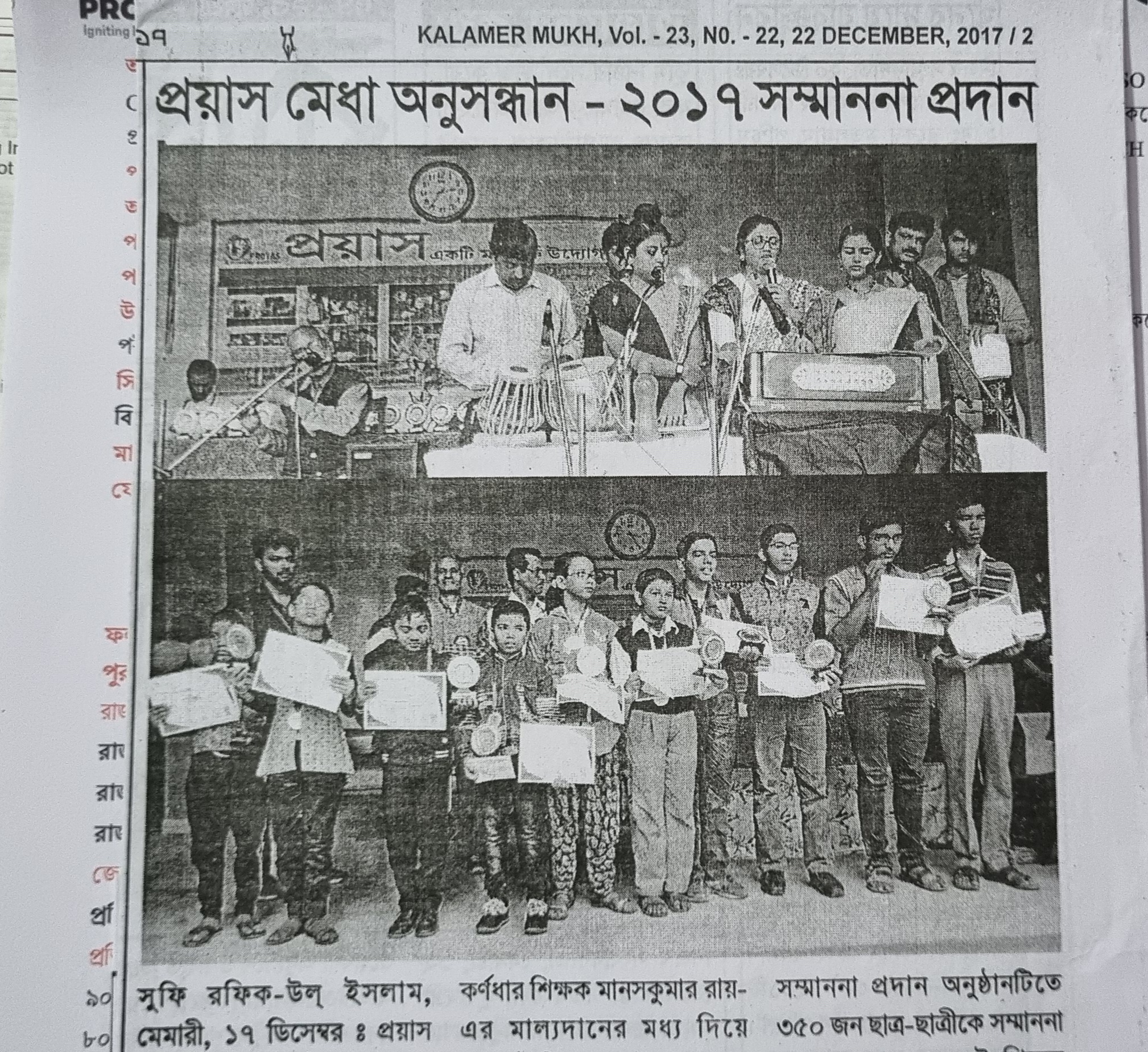 | 1 | 09-03-2025 | জাতীয় ও আন্তর্জাতিক স্তরের অলিম্পিয়াড এর মত বাংলা মাধ্যমের ছাত্র ছাত্রীদের জন্য সারা পশ্চিমবঙ্গের বিশ্বাসযোগ্য এবং আধুনিক মানের সব চেয়ে বড় ট্যালেন্ট সার্চ পরীক্ষা প্রয়াস রাজ্য স্তরের মেধা অনুসন্ধান পরীক্ষা। ২০১৬ সাল থেকে অত্যন্ত বিশ্বস্ততার সাথে পশ্চিম বঙ্গের বিভিন্ন এলাকায় এই পরীক্ষা আয়োজিত হয়ে আসছে। অন্যান্য বছরের মতো এবারেও বিভিন্ন এলাকায় ফর্ম ফিলাপ শুরু হয়েছে। |